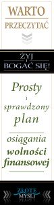 W najbliższą środę 31 sierpnia br. będzie miała miejsce premiera książki Arkadiusza Bednarskiego „Żyj i bogać się”. Publikacja przedstawia prosty i sprawdzony plan osiągania wolności finansowej. Tytuł znajdzie się na naszej stronie pod adresem: http://www.zlotemysli.pl/prod/12043/zyj-i-bogac-sie-arkadiusz-bednarski.html
